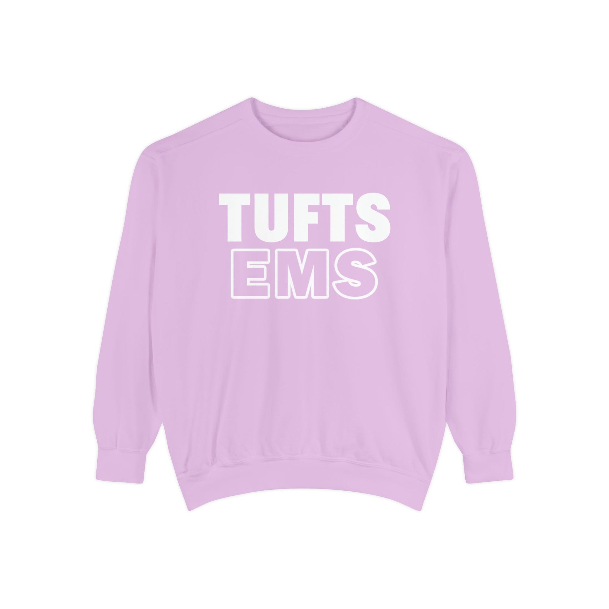 Show your Tufts University EMS pride in style with pink comfort colors crewneck sweatshirt